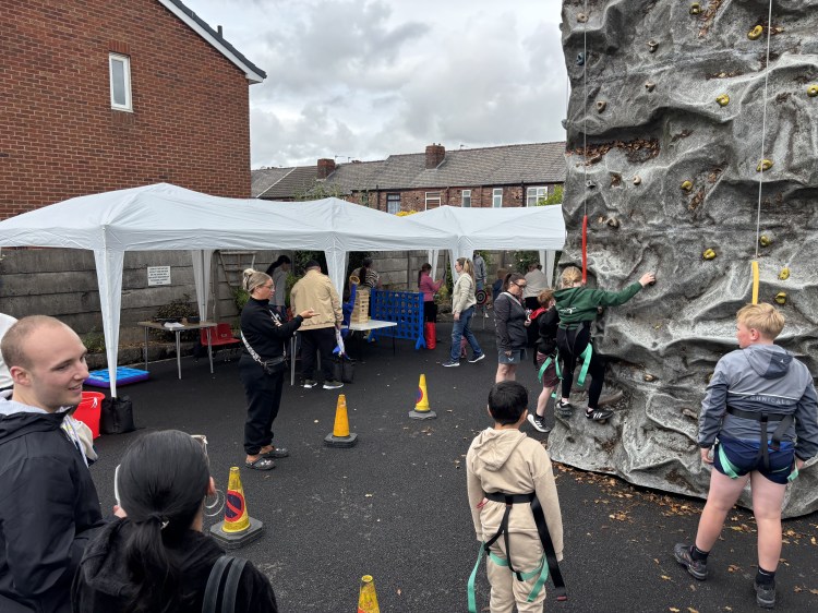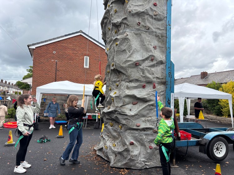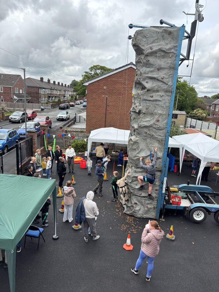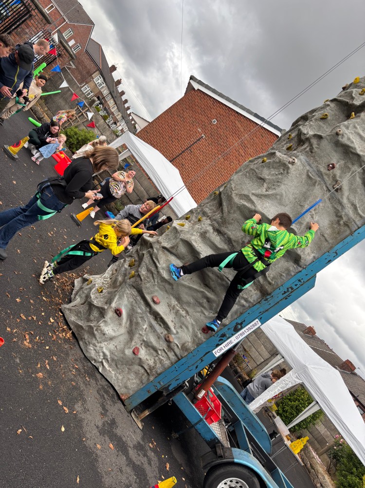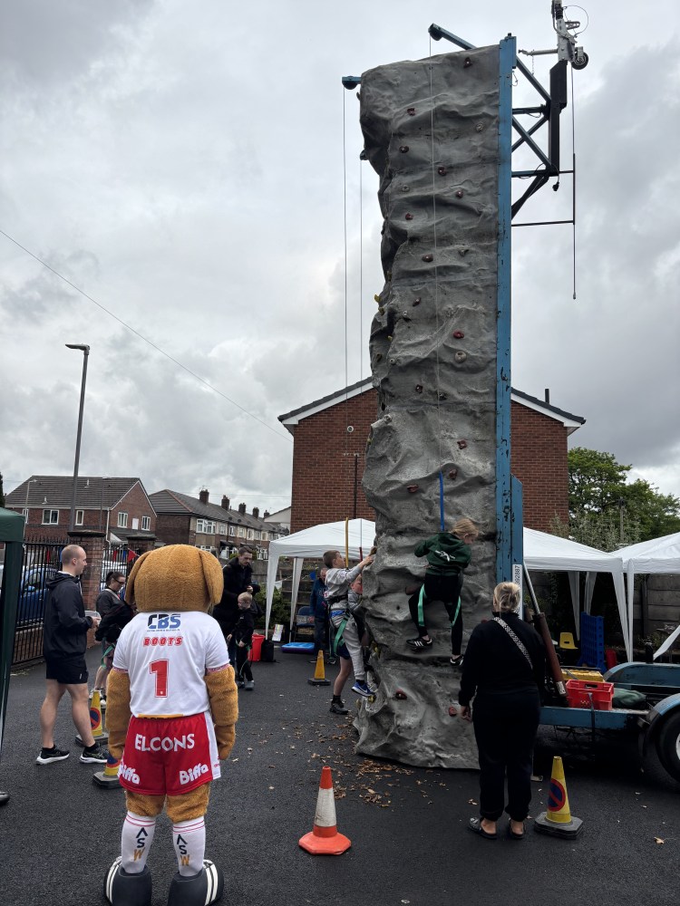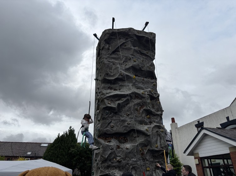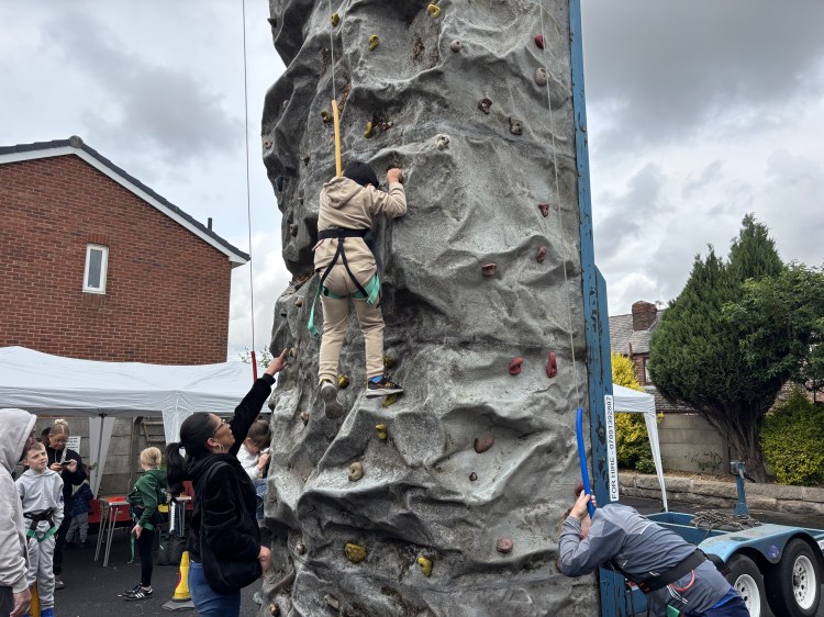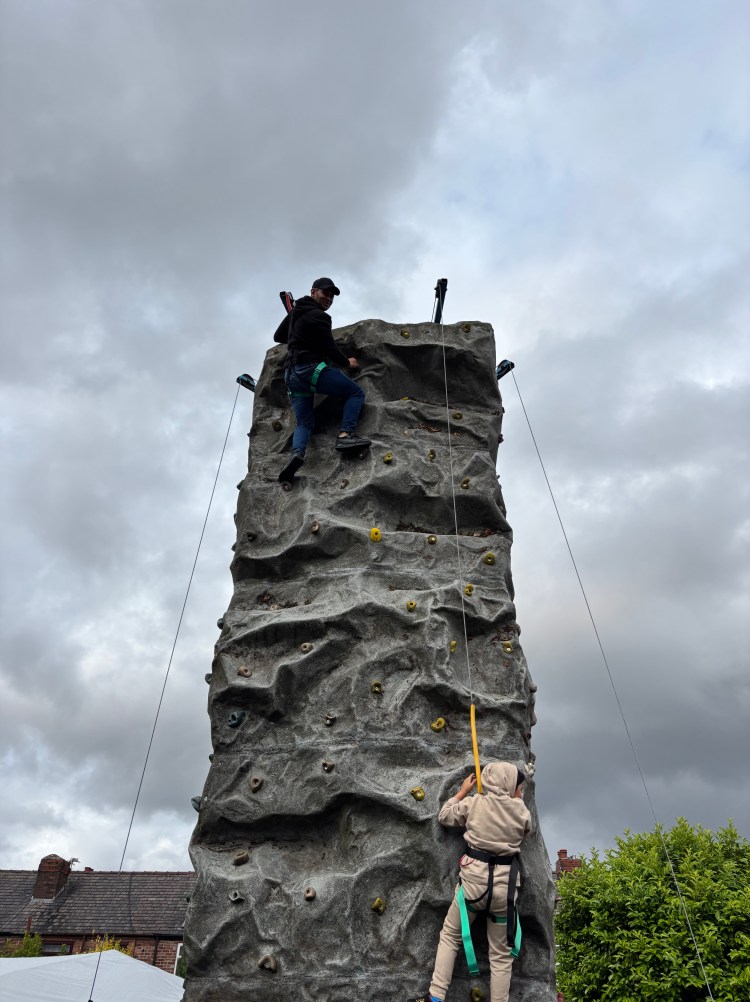 While the weather might have been a bit ‘mixed’, loads of local people came through the doors to enjoy crafts, face painting, refreshments, games and of course to try and reach the top of our climbing wall.