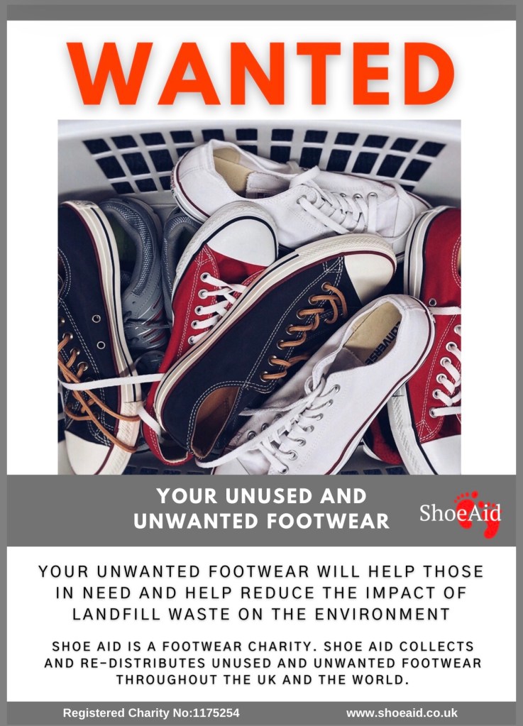 Over the six weeks, as a church we’re going to be collecting your unwanted shoes to donate back to the community or to a charity called Shoe Aid.