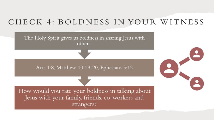We then looked at seven ways of checking how we are doing in our walk and considered a series of self-examination questions. You can follow the PowerPoint below.